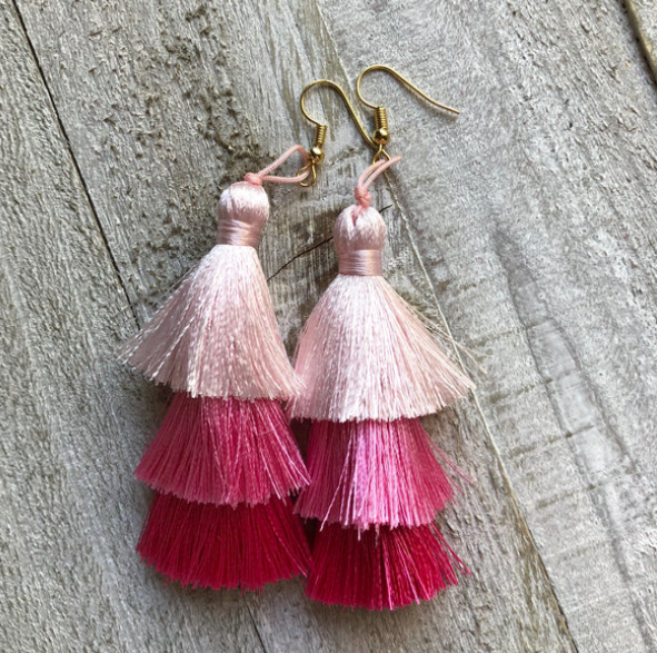 Red + Pink + White Tassel Earrings